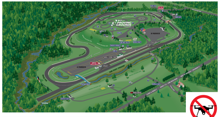 NOTE: Testing, tuning, brake bedding, high speed accelerations or braking will be limited to the track, and not allowed in the paddock or surrounding public roadways. Doing so could result in event expulsion with no fees returned.