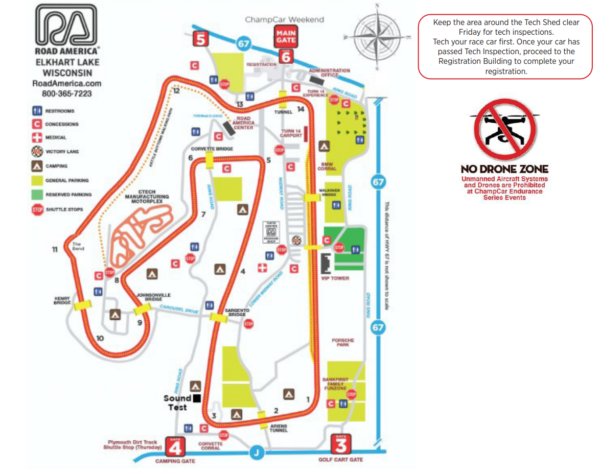 SKATES are not permitted on Road America property. BICYCLES are permitted but may not be ridden in the COMPETITION PADDOCK AREA – this is strictly PROHIBITED. Operators of all motor vehicles (including golf cars) must possess a valid state-issued driver’s license.