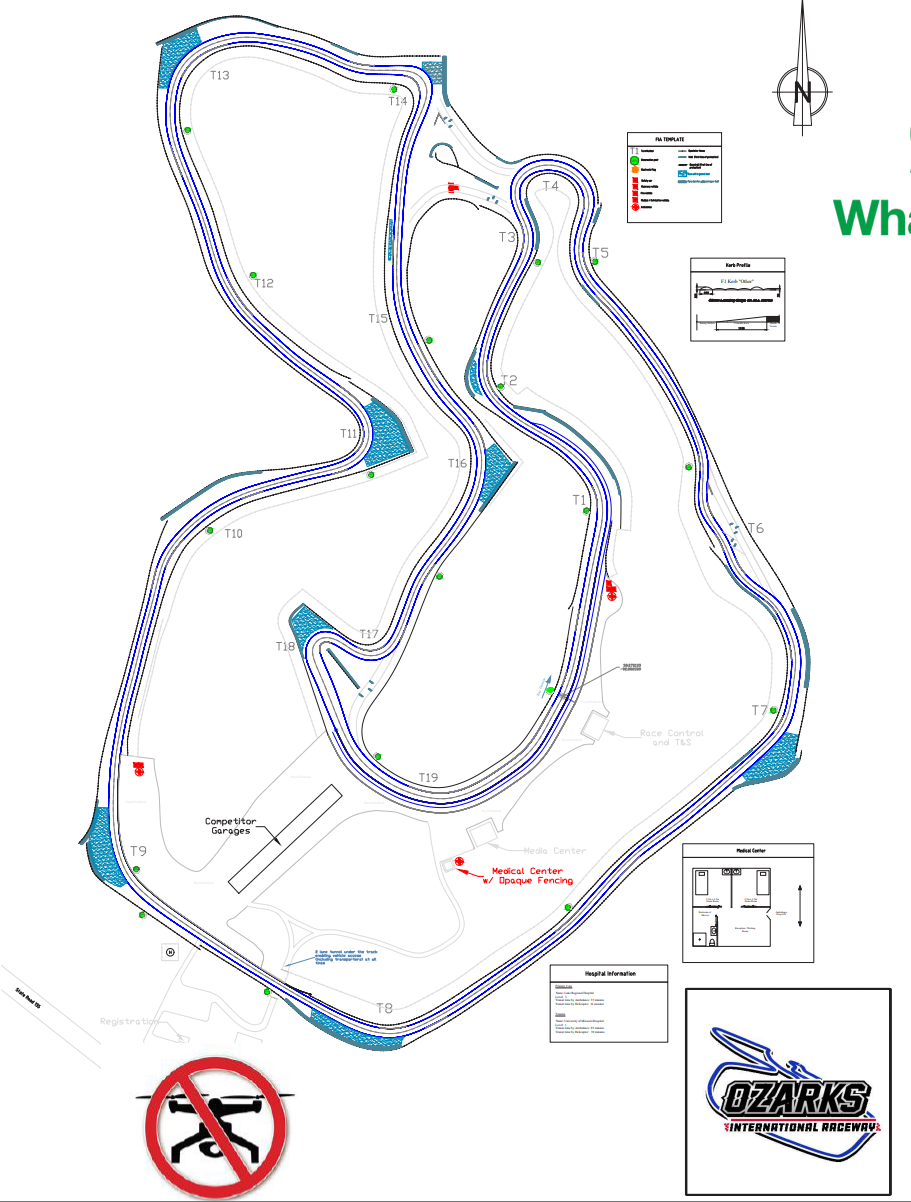 The use or operation of drones or unmanned aerial vehicles (UAVs) is strictly prohibited anywhere on facility grounds at all times. This applies to all participants, crew, media, and spectators. Violations may result in immediate removal from the facility and/or event expulsion without refund.